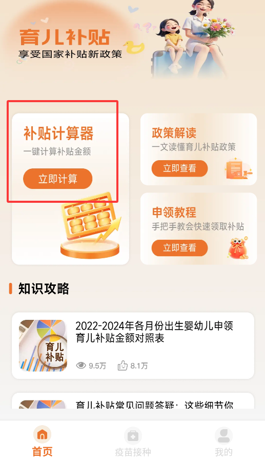 育儿补贴计算器最新版这个育儿补贴APP挺实用的。能查最新的补贴政策,算算能领多少钱,不怕错过福利。还有疫苗接种时间表,该打什么针一看就知道,打完还能记录。新手爸妈用这个管理孩子的事挺方便的。有需要的可以下载试试,操作很简单。