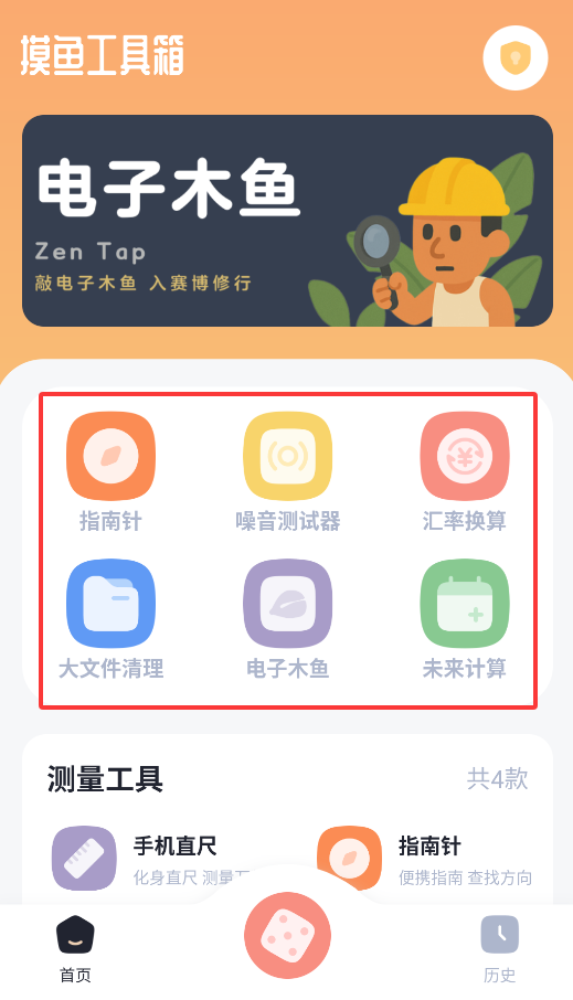 摸鱼工具箱这个工具箱APP挺有意思的,里面啥小工具都有。电子木鱼敲着解压,尺子、分贝仪这些日常也能用上。汇率换算、文件清理这些功能也挺实用。闲着没事摸个鱼,或者临时要用小工具的,装一个挺方便。操作简单,不占内存。