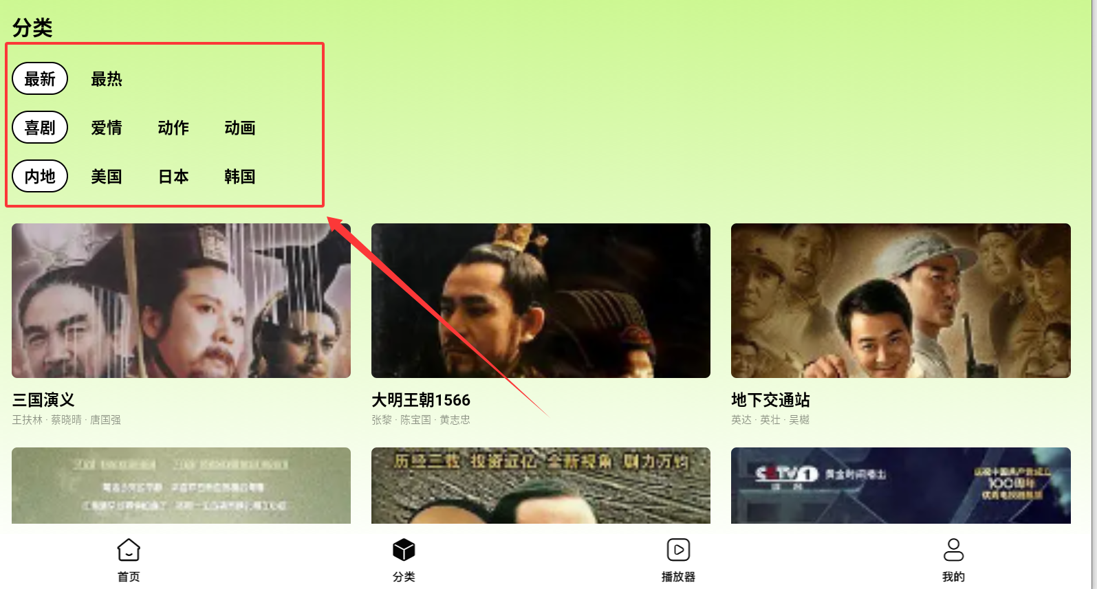 2、进入分类,选项选择需要观看的种类,点击进入即可。