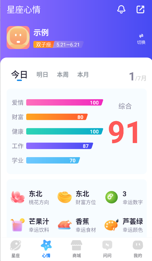 1、每日星运:提供每小时运势变化提醒,重要时间节点推送专属开运小贴士。