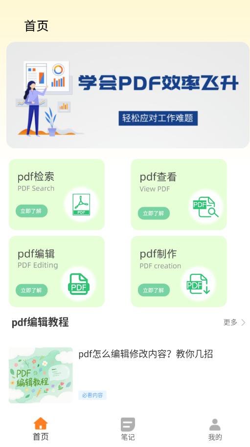 1、启动Noton笔记APP,在首页即可见丰富的PDF处理功能选项。