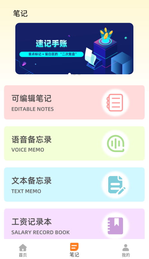 3、进入笔记功能模块,你将发现众多实用的笔记管理与编辑工具。