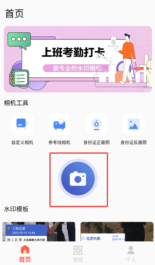 1、启动APP后,点击首页中央的拍摄按钮,即可快速启动相机进行拍照。