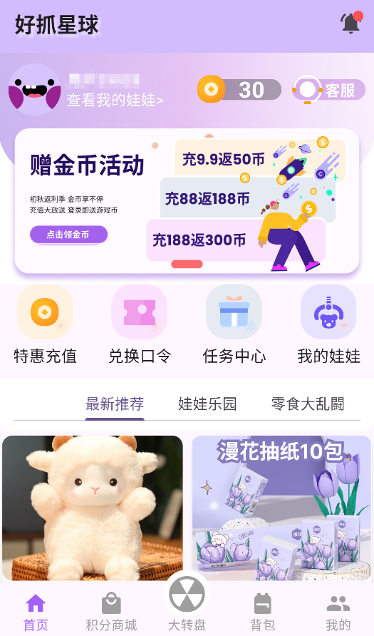 2、积分兑换中心支持使用游戏积累的积分兑换各类萌趣公仔,每日更新可兑换商品,满足用户收藏需求。