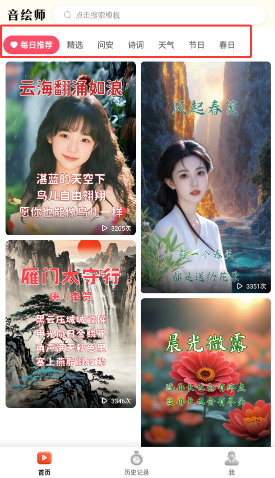 音绘师能帮你快速做出祝福视频,特别适合想发点不一样问候的朋友。直接用自己声音录音,它就能模仿你的声线,生成挺像真人说话的动静。里面还塞了好多现成模板,啥节日生日都能找到合适的款式,改几个字就能用。每天还会推荐一些别人做的视频,用这个还挺省事。