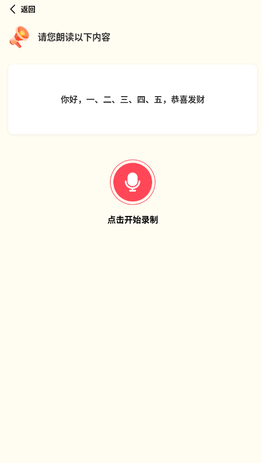 1、首次使用选择"创建声音名片"功能,按照提示朗读指定文本完成声纹采集和建模过程。