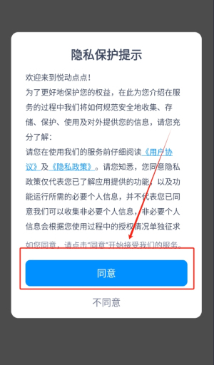 1、点击同意并进入应用。