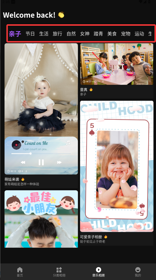 3、内置丰富动态模板库提供多样化创意选择,轻松将静态图片转化为生动音乐相册,增强视觉表现力与情感传达效果。