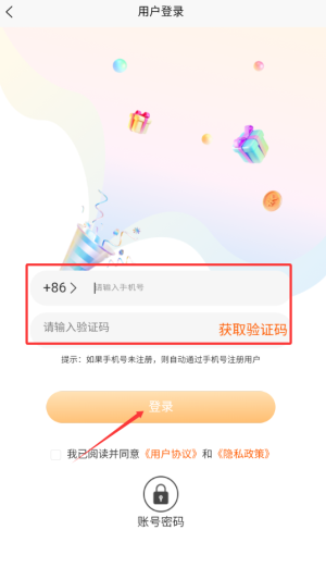 3、输入手机号码和验证码即可完成登录。