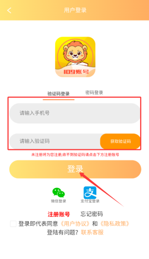 3、输入手机号码,输入验证码即可完成登录。