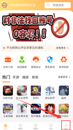 1、打开易零玖代售app,在最右下方找到我的。
