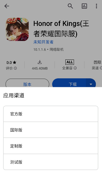 2、点击进入下载详情页,在右侧的国际版中,可以自己切换不同的版本。