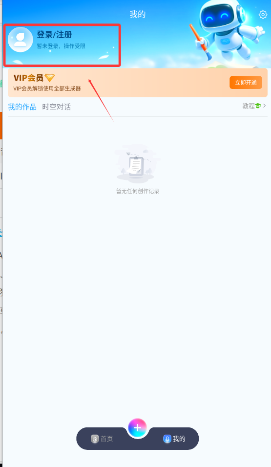 3、在首页选择作品开始创作。