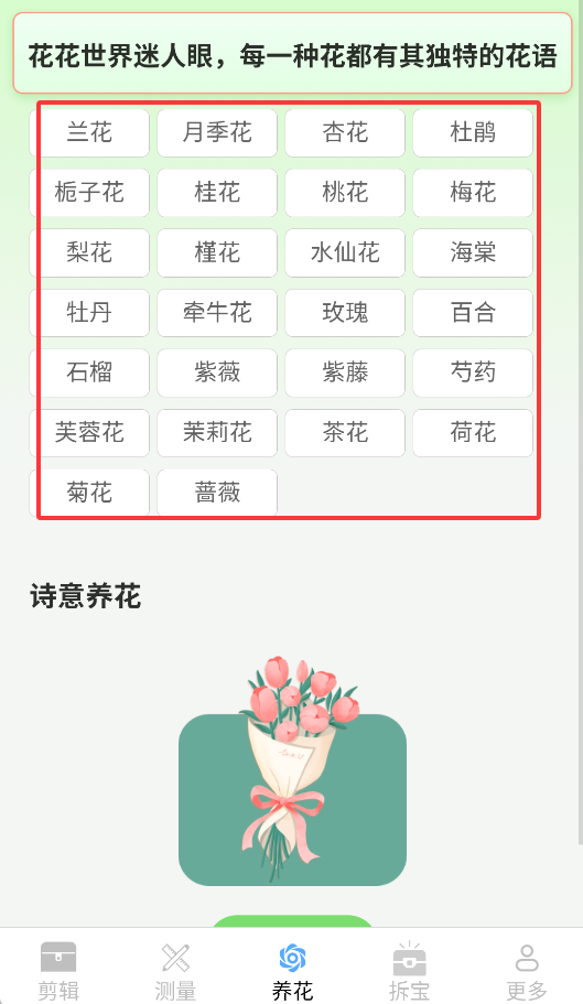 3、进入"养花"可查询各种花语的解读让你更好的理解不同花语的意思。