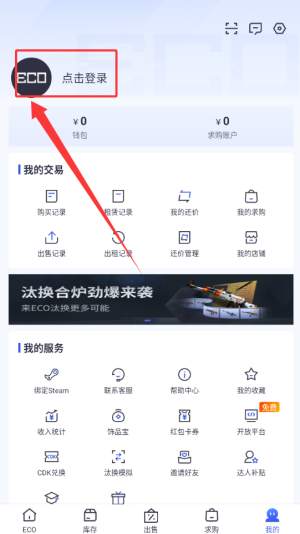 1、打卡ECOSteamapp,在最右下方找到我的。