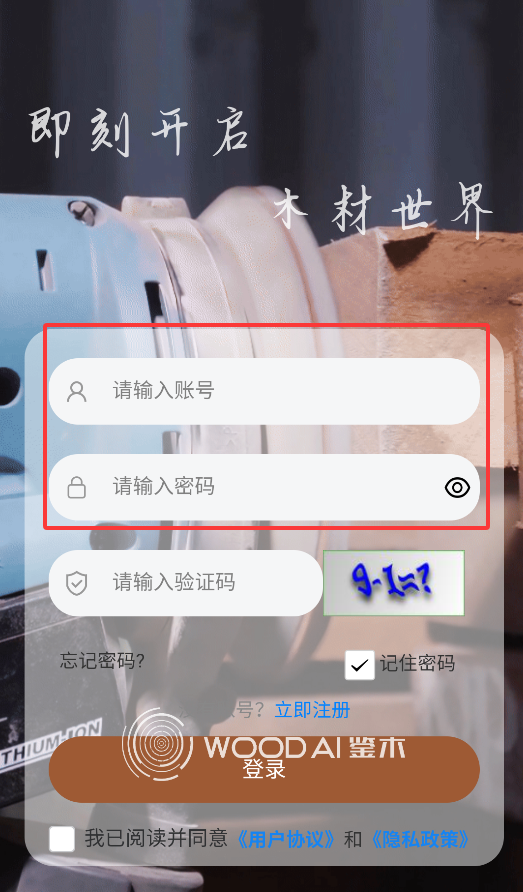 3、返回登录页面,输入已注册的手机号和密码,点击"登录"即可进入AI木材识别系统。