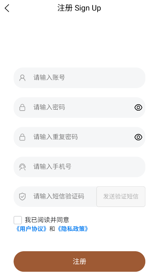 1、打开应用后,在登录页面点击"新用户注册"按钮,进入账号创建流程。