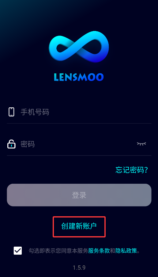 1、启动APP后,点击登录页面的"注册账号"选项,进入新用户注册流程。