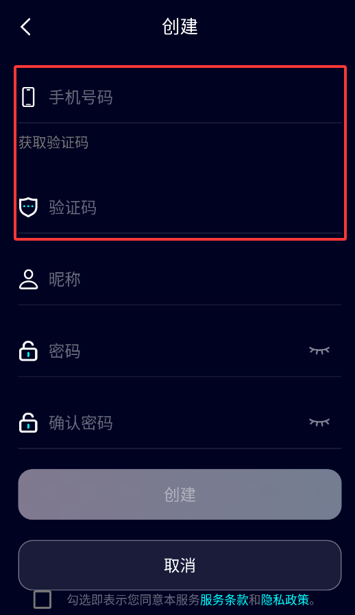 2、按要求输入有效手机号,获取并填写短信验证码,设置登录密码完成账户创建。