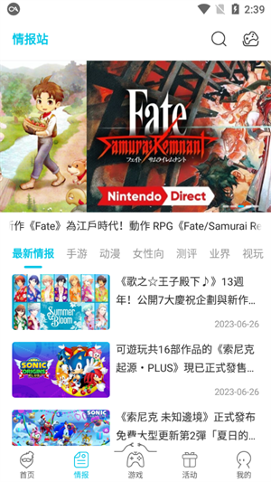 3、在情报页面,这里有许多的游戏资讯以及读者投稿等。