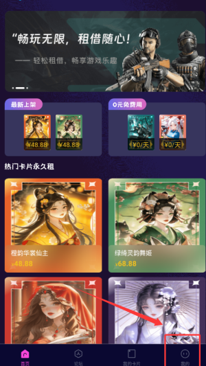 1、打开租游戏卡app,在右下角找到我的。