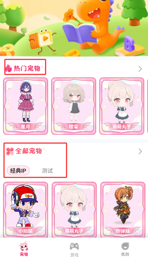 1、启动APP后,在“宠物乐园”浏览热门萌宠,支持按IP、年龄筛选。