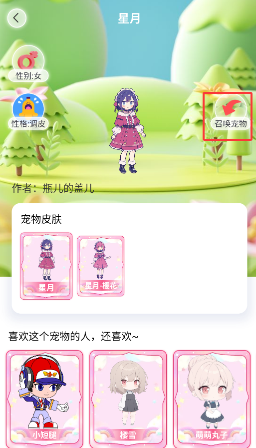 2、遇到心仪宠物后,点击“召唤TA”按钮,准备开启互动模式。