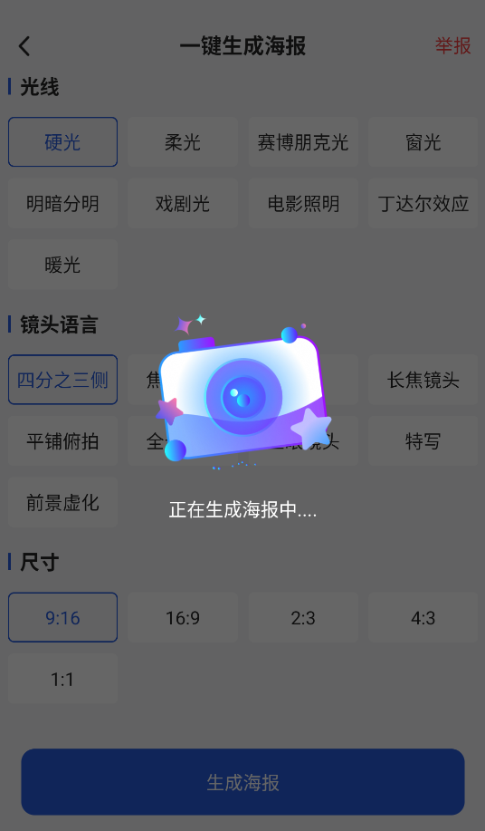 2、输入主题关键词并选择风格偏好,系统将智能生成匹配的海报设计方案。