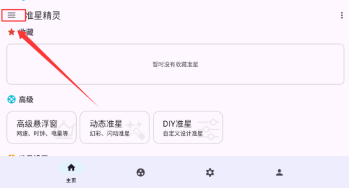 1、进入准星精灵安卓最新版app,找到左上角三条横线。