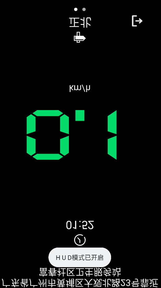 2、开启"HUD投影"模式后,手机会将车速等信息投射到挡风玻璃(需放置在仪表台),夜间模式自动切换为红色防眩光显示。