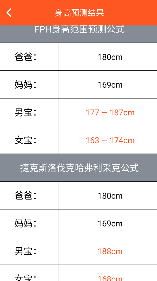 1、启动APP后,进入“身高预测”功能,输入父母身高(厘米单位),系统自动匹配遗传算法模型。
