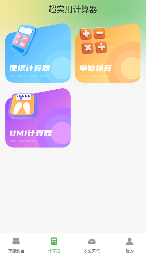2、内置多功能计算器,包含土地单位换算(亩/公顷/平方米)、农药配比计算及健康指数测算等实用工具。