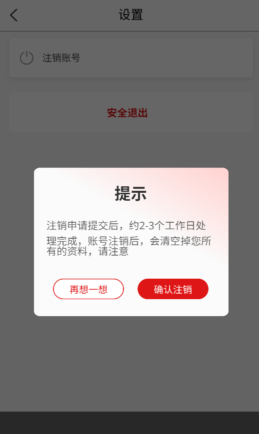 3、仔细阅读注销条款后,点击确认按钮即可完成账号注销流程,所有数据将被永久删除。