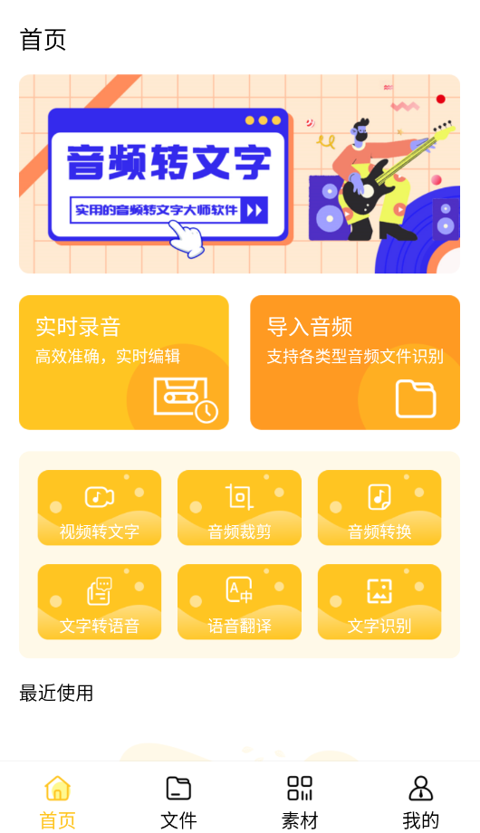 1、进入音频转文字大师APP,在功能首页浏览并选择需要的服务。