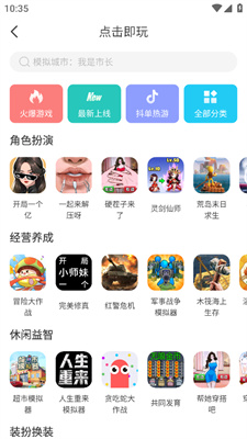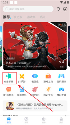 1、在软件首页选择【点击即玩】板块。