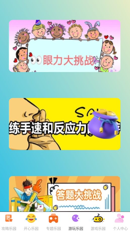 1、打开APP后,进入"游玩乐园"专区,这里有多种类型,您可以根据兴趣自由选择。