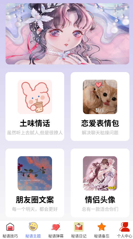 秘语APP是聊天找话题用的。里面情话、文案挺多的,不知道怎么回消息时可以翻一翻。最特别是能生成表白弹幕,搞点小浪漫不错。想追人或者聊天怕冷场的朋友可以试试,不过别太依赖,真诚最重要,快点下载一个试试吧。