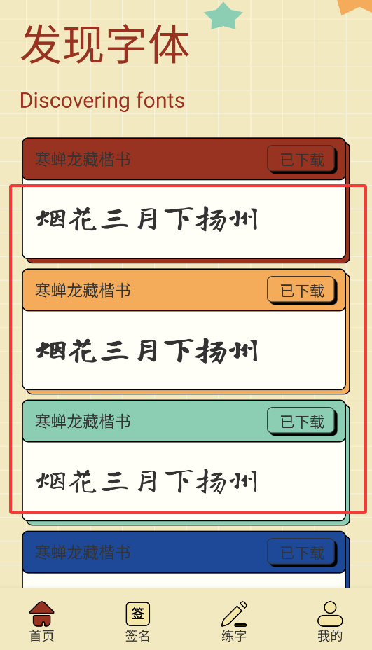 2、字体资源丰富且专业度高,特别是商务签名模块,深受职场人士的青睐与好评。