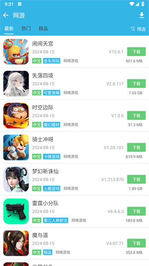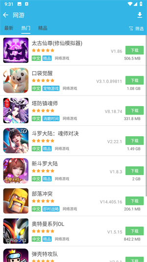 3、最新游戏:每天第一时间发布最新游戏,并提供最全面的游戏分类、专题和推荐。
