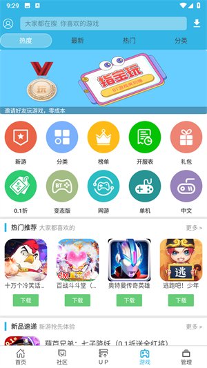非常好用的游戏下载平台,为玩家提供了一个便捷、高效、全面的游戏下载和推荐平台,里面还收录最新的安卓游戏资源,游戏类型多种多样,满足你的多样化选择的需求,作为一款全新的游戏平台,能够满足你的所有使用需求,带给你不同的精彩体验。