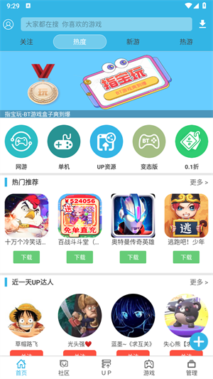 1、打开软件,进入首页,里面为你提供丰富的游戏资源。