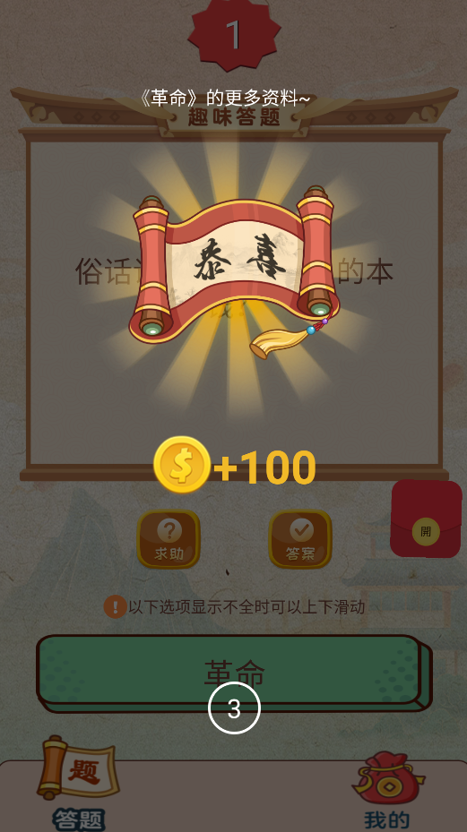 2、系统实时判断正误,答对即可累积现金奖励,错误则会显示正确答案解析。