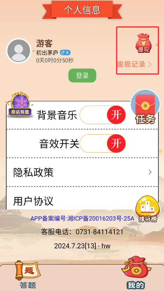 天天答题赚钱这个答题APP挺有意思的,各种百科知识题都有。简单难度的适合消遣,专业题库能学点真东西。闯关成功还有奖励拿,玩着玩着就长知识了。想动脑又不想太累的,快点去下个试试挺合适。题目更新快,用着也顺手。