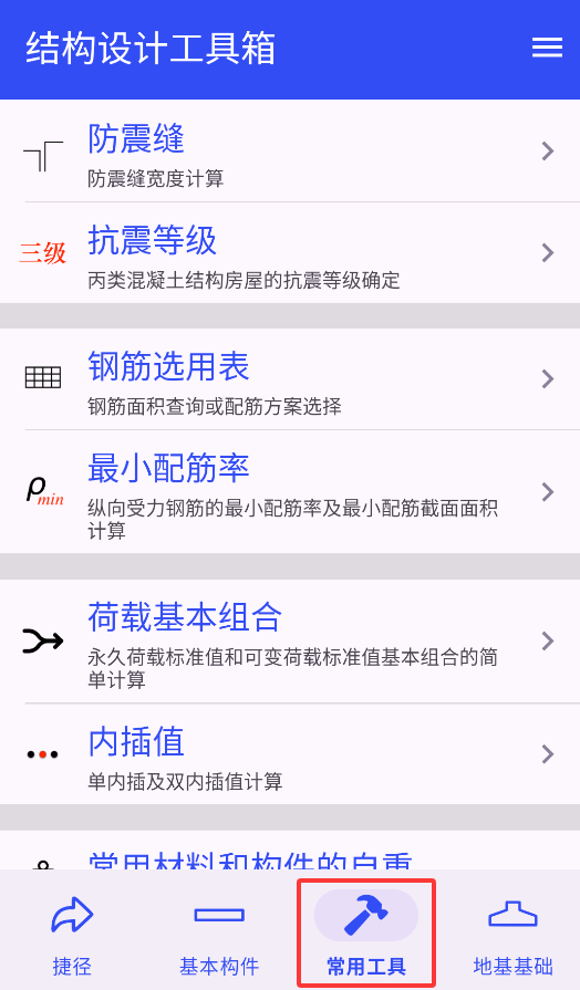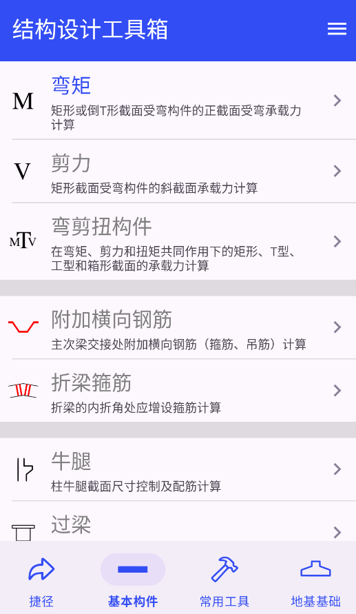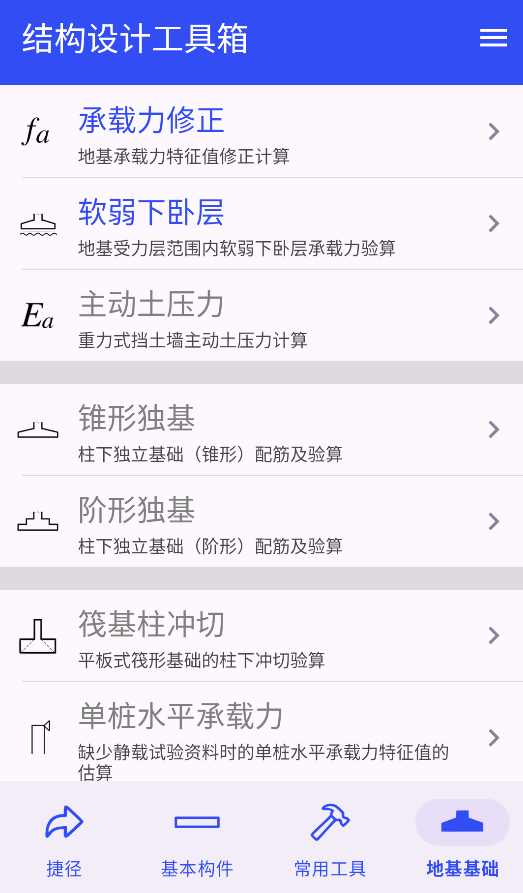 结构设计工具箱这个工程师APP挺实用的,建筑结构计算、地基验算都能做。常用工具分类清楚,算数据挺方便。如果你平时经常要画图或者搞设计的,用这个挺省事。而且操作简单,结果也靠谱,快点下载一个体验一下吧。