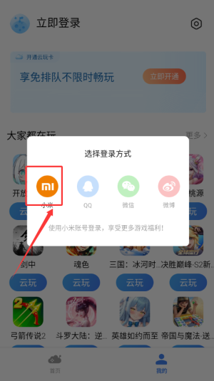 2、用户可选择小米,qq,微信,微博登录。