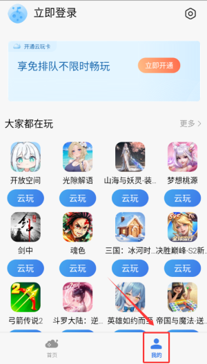 1、进入小米游戏云玩服务app,找到我的。