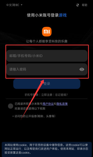 3、用选择对应的登录方式,如下图选择小米账号登录,用户只需要输入小米账号即可。