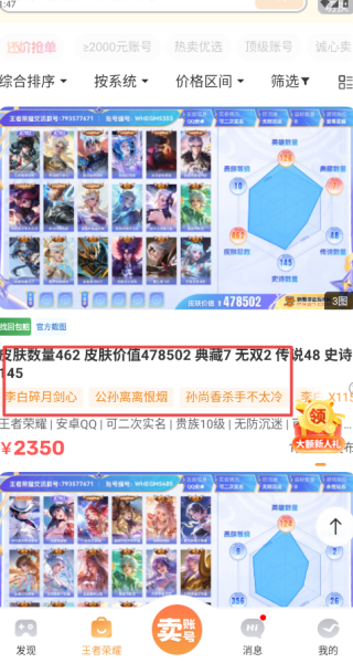 1、游戏资源覆盖度行业领先,热门新游账号上架迅速。满足各类玩家需求。