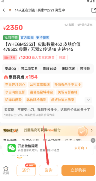 2、点击进入账号详情页面,再次点击下方的咨询按钮;