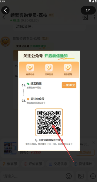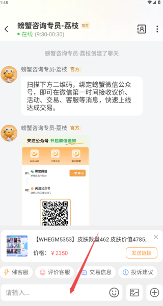 4、如果客服不在线,那么可以扫码加入微信公众号,进行咨询议价!